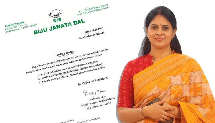 ଶ୍ରୀମୟୀ ବିଜେଡିରେ ମହିଳା ବ୍ୟାପାର ସାଧାରଣ ସମ୍ପାଦକ ପଦବୀରେ ଅବସ୍ଥାପିତ ରହିଥିଲେ। କିଛି ଦିନ ହେବ ସେ ସାମାଜିକ ଗଣମାଧ୍ୟମରେ ଦଳ ବିରୋଧରେ ବିଭିନ୍ନ ମନ୍ତବ୍ୟ ଦେଇଆସୁଥିଲେ। ଧୃତରାଷ୍ଟ୍ର ଏବଂ ଭଣ୍ଡ ସନ୍ନ୍ୟାସୀ ଉପାଖ୍ୟାନରେ ଦଳର ମଙ୍ଗୁଆଳଙ୍କୁ କଟାକ୍ଷ କରି ଚର୍ଚ୍ଚାରେ ରହିଥିଲେ। ସେହି କାରଣରୁ ତାଙ୍କ ବିରୋଧରେ କାର୍ଯ୍ୟାନୁଷ୍ଠାନ ନିଆଯାଇଥିବା କୁହାଯାଇଛି।