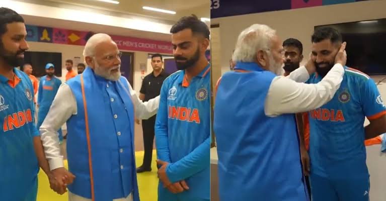 ତେବେ ଫାଇନାଲ ମ୍ୟାଚ୍ ପରେ ଡ୍ରେସିଂ ରୁମରେ ପହଞ୍ଚିଥିଲେ ଭାରତର ପ୍ରଧାନମନ୍ତ୍ରୀ ନରେନ୍ଦ୍ର ମୋଦି । ଭାରତୀୟ ଖେଳାଳୀଙ୍କୁ ଭେଟିବା ସହ ସେମାନଙ୍କର ମନୋବଳ ବଢାଇଥିଲେ । ଡ୍ରେସିଂରୁମରେ ପହଞ୍ଚି ଭାରତୀୟ ଖେଳାଳୀଙ୍କ ସହ ହାତ ମିଳାଇ, ପିଠି ଥାପୁଡାଇ ମୋଦି କହିଥିଲେ, ପୂରା ଦେଶ ଆପଣଙ୍କୁ ଦେଖୁଛି ।