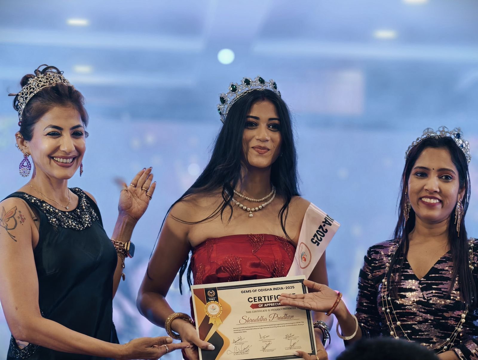 ଜେମ୍ସ ଓଡିଶା ୨୦୨୫ ର ବିଜେତା ହେଲେ ସମ୍ବଲପୁରର ଶ୍ରଦ୍ଧା ପ୍ରଧାନ ଅଭିନେତ୍ରୀ ସୂର୍ଯ୍ୟମୟୀ ପିନ୍ଧାଇଲେ କ୍ରାଉନ୍