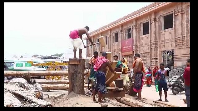 ପୁରୀ : ଜୋରସୋରରେ ଆଗେଇ ଚାଲିଛି ରଥ ନିର୍ମାଣ କାର୍ଯ୍ୟ । ନିର୍ମାଣ ପ୍ରକ୍ରିୟାରେ ନନ୍ଦିଘୋଷ ପାଇଁ ୧୬ଟି, ତାଳଧ୍ୱଜ ପାଇଁ ୧୪ଟି ଓ ଦେବୀଦଳନ ପାଇଁ ୧୨ଟି, ସମୁଦାୟ ୪୨ଟି ତୁମ୍ଭ ପ୍ରସ୍ତୁତ ହୋଇଛି। ଅକ୍ଷୟ ତୃତୀୟାରେ ଆଜ୍ଞାମାଳ ବିଜେ ପରେ ରଥ ନିର୍ମାଣ କାର୍ଯ୍ୟ ଚାଲିଛି । କରତି ସେବକଙ୍କ ଦ୍ୱାରା ଫାଶୀ କାଠ ଚିରଟ କରାଯାଇ ତୁମ୍ଭ ତିଆରି ପରେ ଗତକାଲିଠାରୁ ତୁମ୍ଭରେ ବିନ୍ଧ କରାଯାଉଛି।
